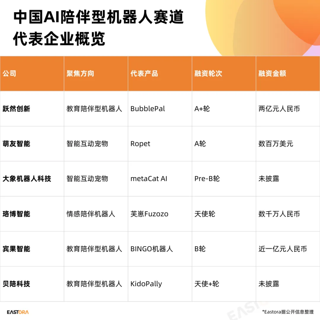 资本市场已验证了这点。从去年下半年开始,中国AI陪伴型机器人赛道开始涌入一大批新玩家,贝隐科技、萌友智能等初创企业获得了数百万到千万不等的融资,来自阿里、美团等科技巨头的前高管也相继投入这波创业潮。