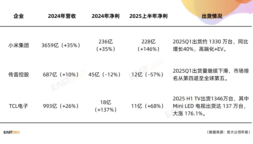电视赛道的“解法”更直白:沿着大屏与Mini LED走高端化。TCL电子2024 年报显示营收与利润显著修复,在“量复苏、利集中”的周期里活得从容。