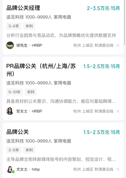 此外,原中国区执行总裁郭人杰于2024年底离职,他曾是追觅营销体系的灵魂人物。Boss直聘上,追觅品牌总监的招聘岗位长期空缺。
