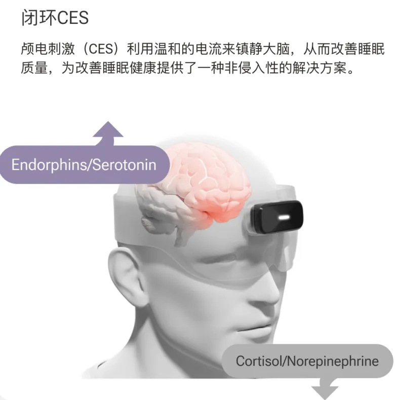 在这一痛点的催生下,市场趋势又有了新的分化:一类品牌致力于“主动干预”的可穿戴设备升级;另一类则以非可穿戴设备从用户的睡眠环境上做文章。前者如强脑科技(BrainCo)推出“深海豚脑机智能安睡仪”(2499元人民币),将脑机接口技术与睡眠场景深度结合,开创闭环微电流刺激(CL-CES),通过精准脑电(EEG)检测技术与声光电干预,进行主动的神经调节,引导用户进入放松、专注的睡眠状态。