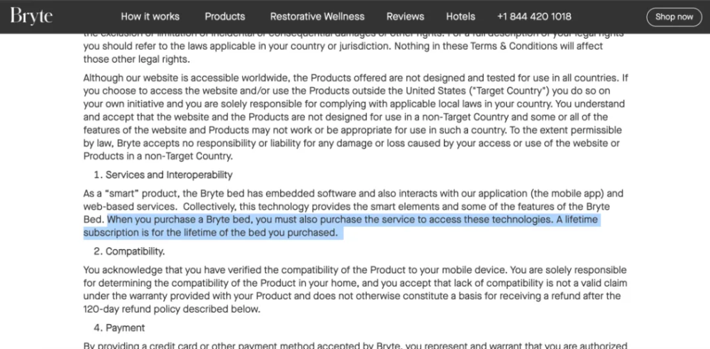 在收费模式上,中国企业倾向于一次性买断硬件的传统模式。海外企业则普遍采用“硬件+软件订阅”的混合模式,通过持续的服务收费构建收入护城河,比如 Withings在其官网的服务条款中特别强调“终身订阅服务的有效期与您购买的床的使用寿命相同”,希望和用户建立潜在的“长期绑定”。