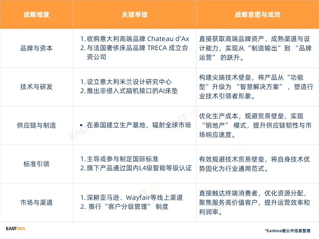 • 品牌资本充当“放大器”:收购获得的成熟高端品牌,为其前沿技术提供了一个绝佳的“展示厅”。当创新的AI睡眠解决方案被置于Chateau d’Ax或TRECA的奢华场景中,其技术价值得以被高端市场认知并接受,实现了“高技术”与“高品牌”的相互赋能。