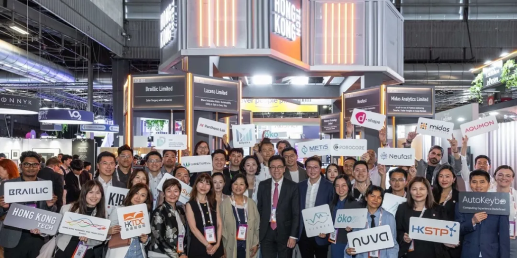 这家由香港科技大学孵化的企业在 VivaTech 2025 上与法国室内训练平台 Kinomap 签署谅解备忘录(MOU)。其核心产品 PointFit Sweat Sensor采用专利极薄聚合物纳米薄膜(UHMWPE)技术,可贴在皮肤上采集汗液,通过无线传输至应用程序,实时监测乳酸水平,并在接近危险阈值时发出预警,避免运动损伤,还可用于监测糖尿病、皮肤病及心血管疾病等。