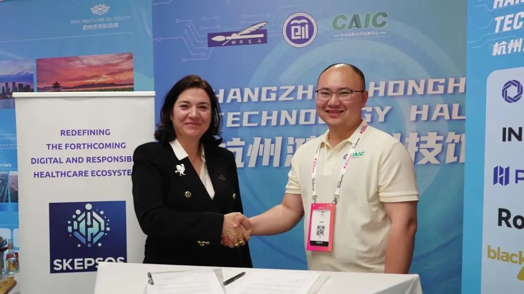 例如,2024年,杭州欧美同学会设立“杭州鸿鹄科技馆”,汇集了灵伴科技、莲偶科技、利尔达科技集团等多家杭州企业,共同展示了杭州科技产业生态圈的特色,此外,巴黎数字生命健康产业园与中法创新合作加速中心在馆内现场签署了合作协议。这直接反映出国家馆的优势——不仅能降低单个企业的海外拓荒成本,更能汇聚成强大的“中国科技”品牌势能,帮助初创企业摆脱“单打独斗”的弱势,高效对接全球资源。