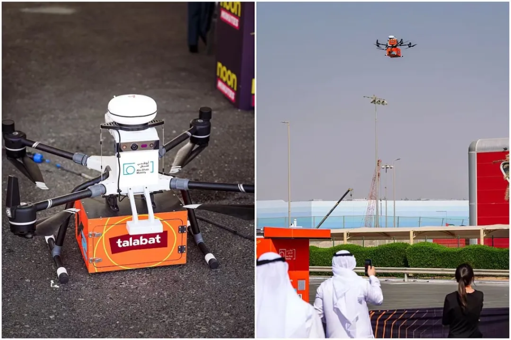 11月17日,在第18届迪拜航展上,中国镭影、容祺等企业携多款外卖/物流无人机登场,其中镭影Q20适配中东高温配送需求、容祺最大载重机达300公斤,吸引众多中东客户下单。这场展会成为中国民用无人机集体出海的重要舞台。(来源:第一财经)